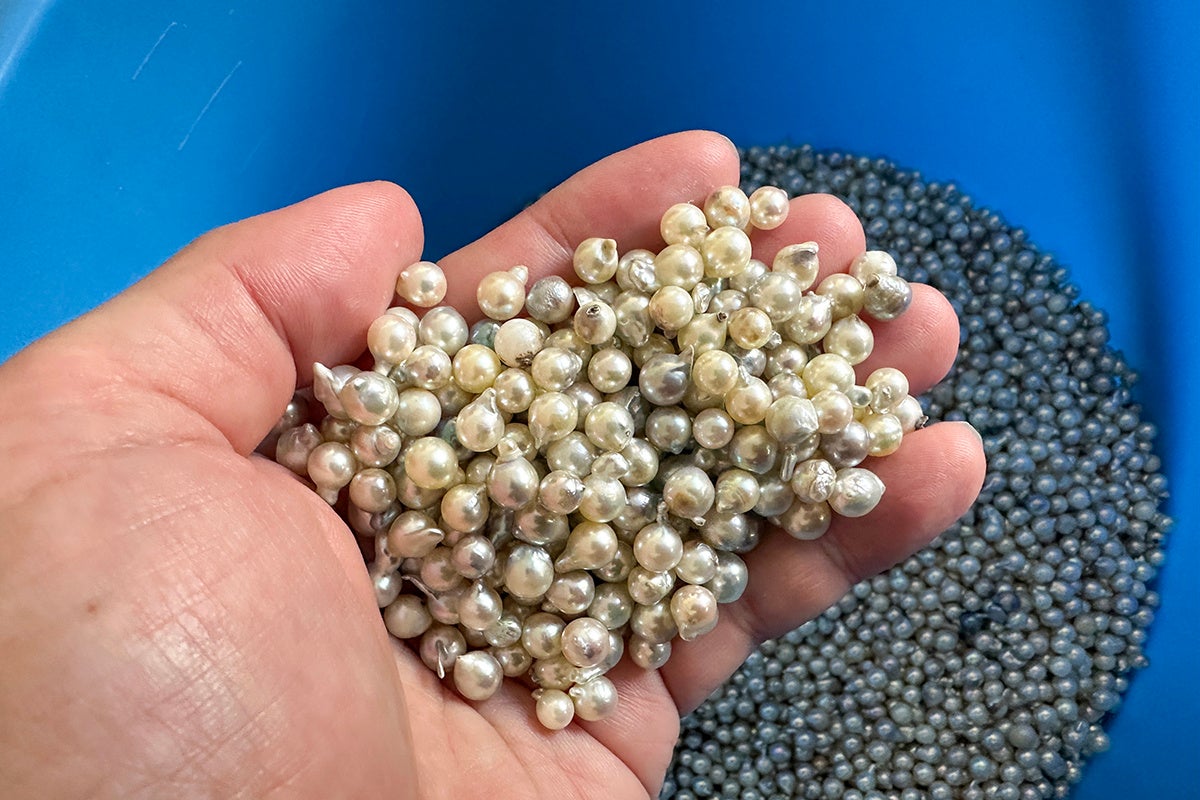 これまで、大きく変形している「鬼バロック」とよばれる真珠は規格外とされ、尾ひれや尻尾に見える突起物は切り落とされ、廃棄されてきました。