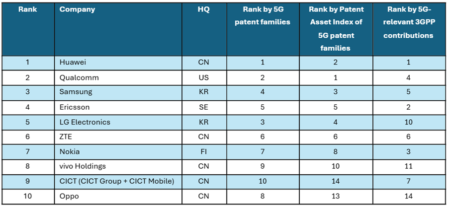 <5G特許リーダー Top 10(2026年)>