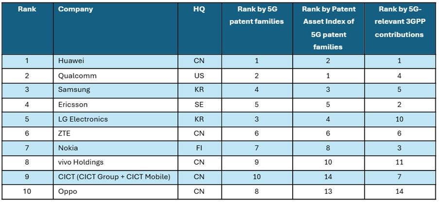 ファーウェイ、クアルコム、サムスン、エリクソンが5G特許レースをリード——日本企業9社が上位50社にランクイン