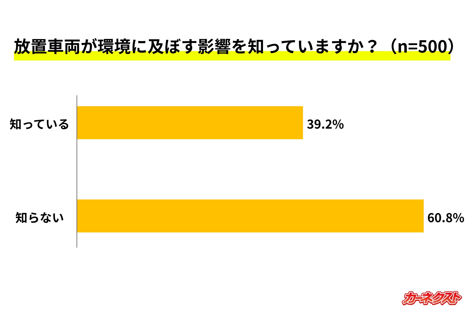 出典:廃車買取の株式会社カーネクストのプレスリリース「放置自動車の実態「環境への影響知らない」が60.8%」