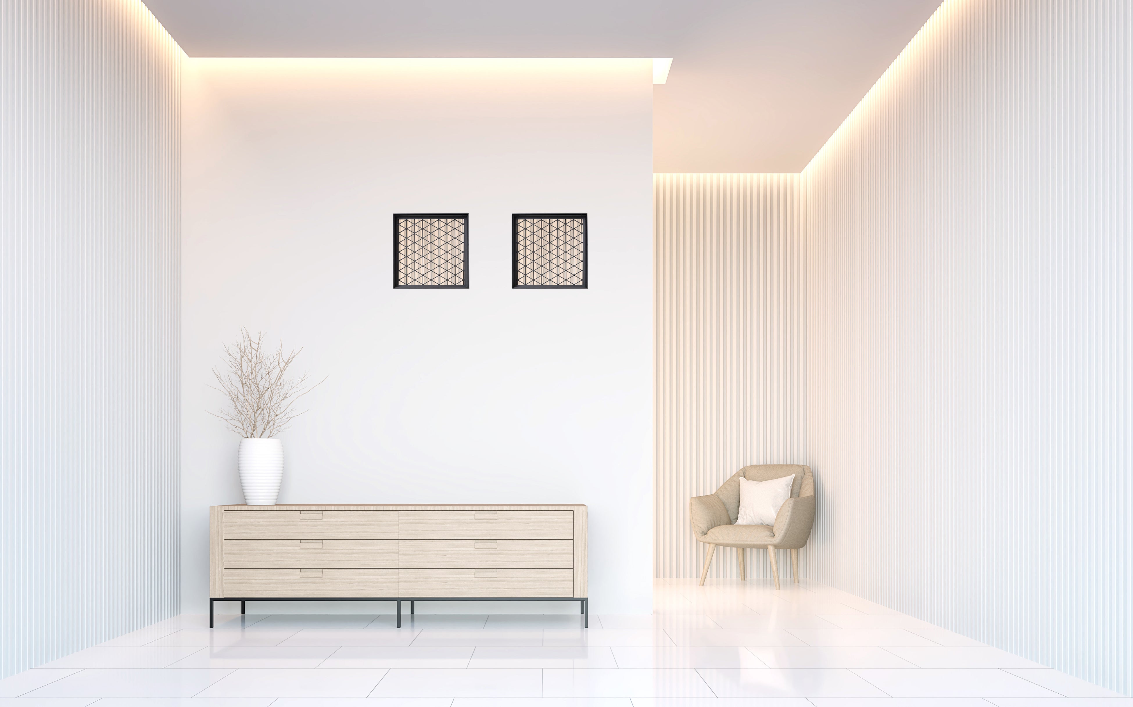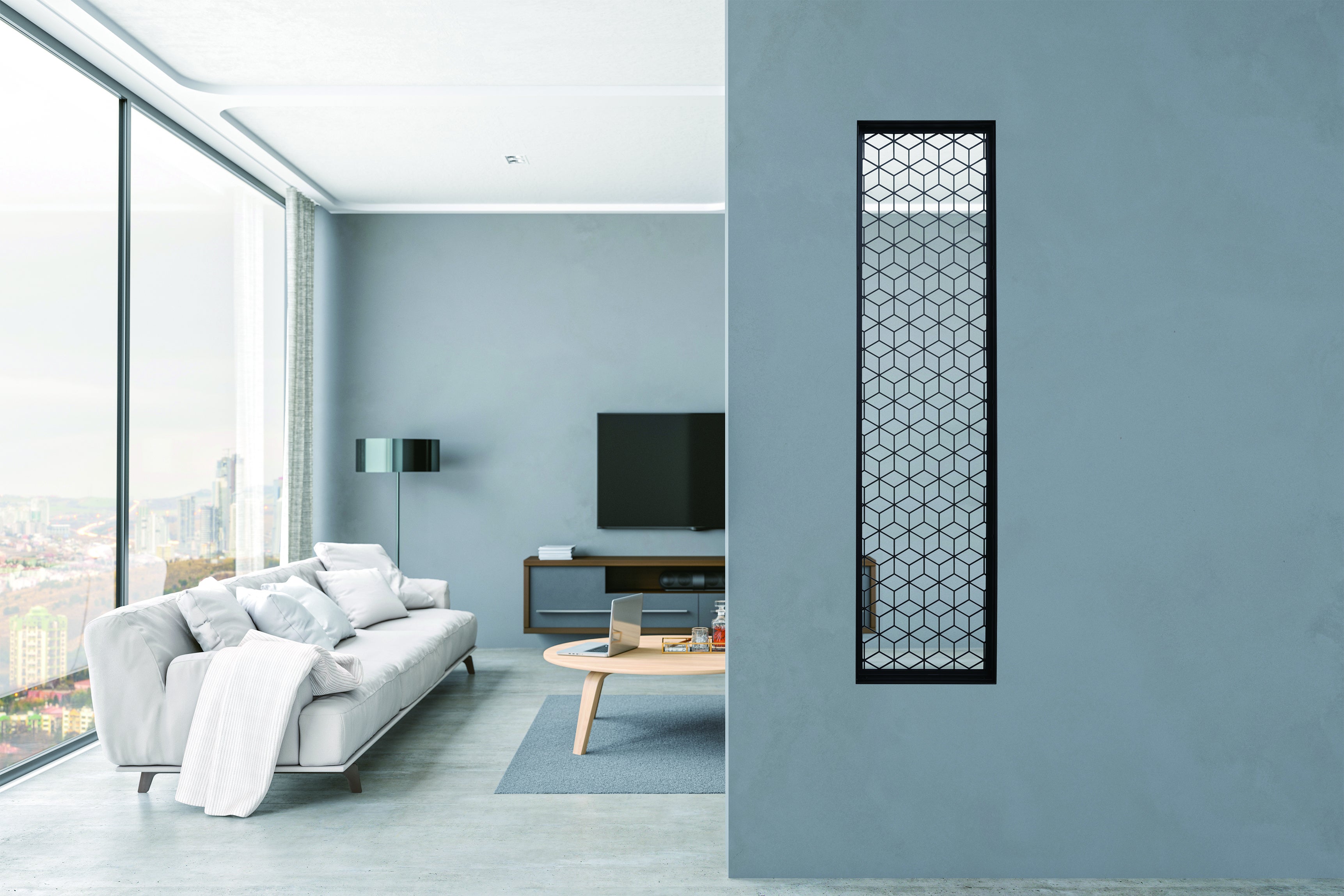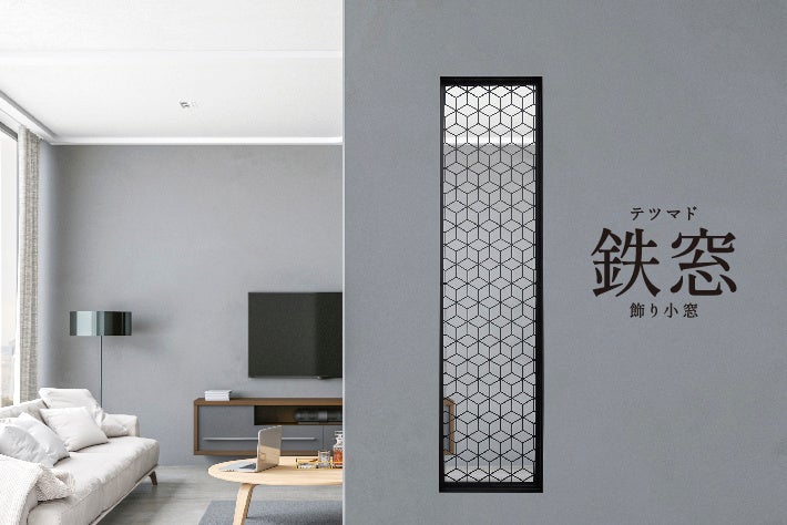 『鉄窓』は、日本の伝統工芸「組子」をモチーフにした幾何学模様を組み込んだ小窓で、室内壁を彩ることができます。レーザーで加工したスチール板を重ねる構造であり、木材を加工して作るには難易度が高い文様を表現できることが、本商品の特徴です。