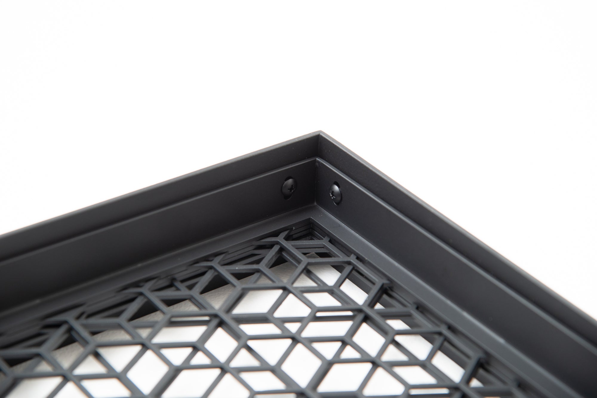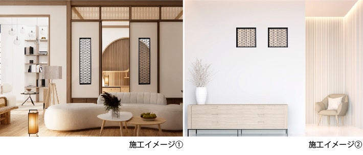 しかし、スチールで組子を再現することで、モダンな住宅等、より幅広いテイストの空間に取り入れることが可能になります。また、スチール板を重ねることで見せる立体的な表情はこの商品「ならでは」であり、他の手段では代替できない特別なデザインを実現でき