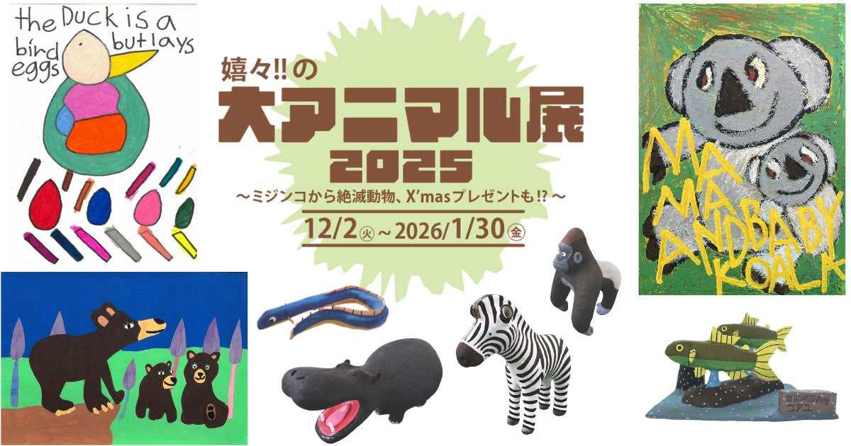 【障がい者アート】アートの動物たちが嬉々と集う!!「嬉々‼の大アニマル展2025」、12月・1月好評開催中!!