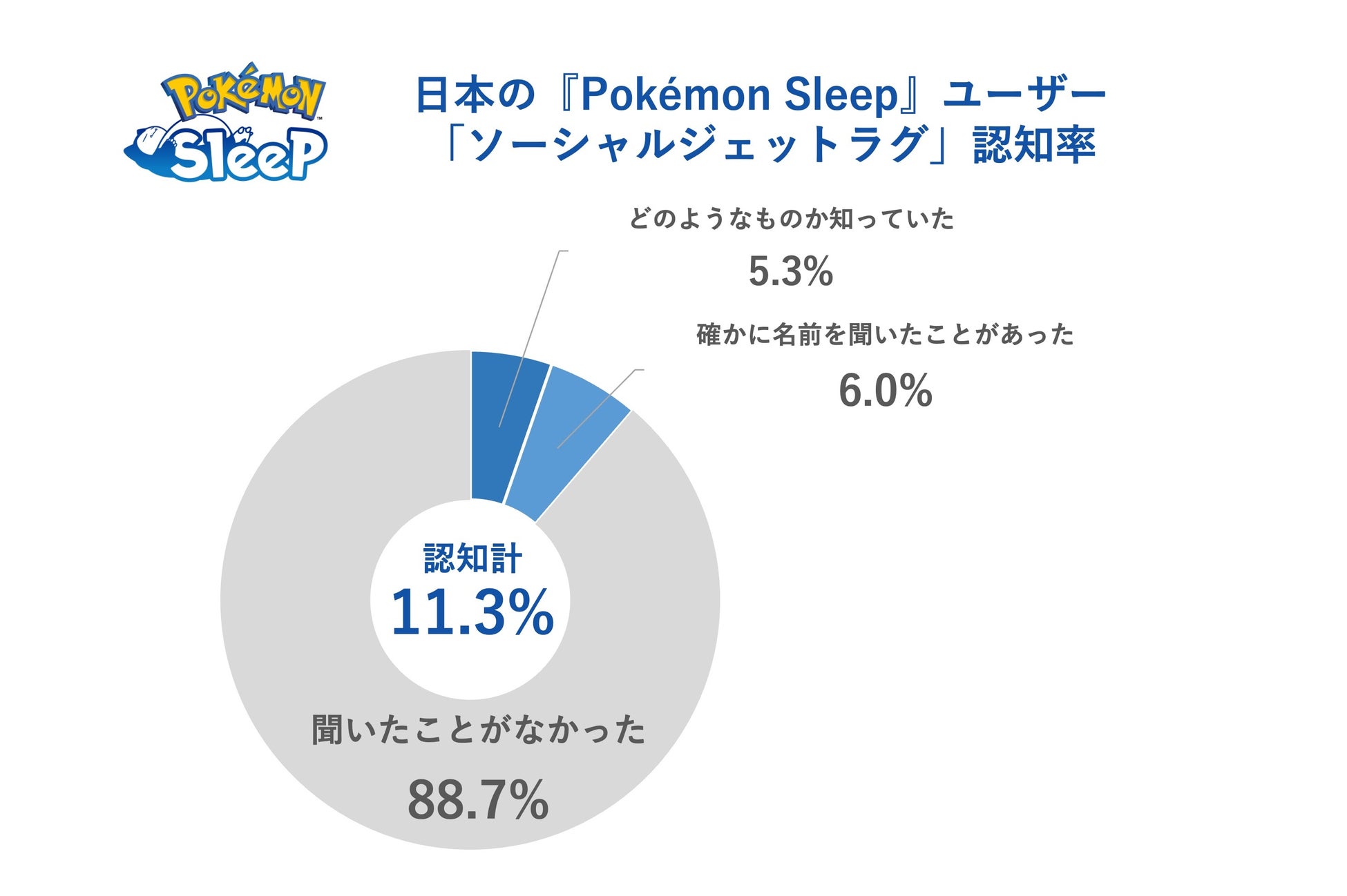 日本の『Pokémon Sleep』ユーザーにアンケート調査を実施したところ、ソーシャルジェットラグを88.7%の方が知らないと回答しました。