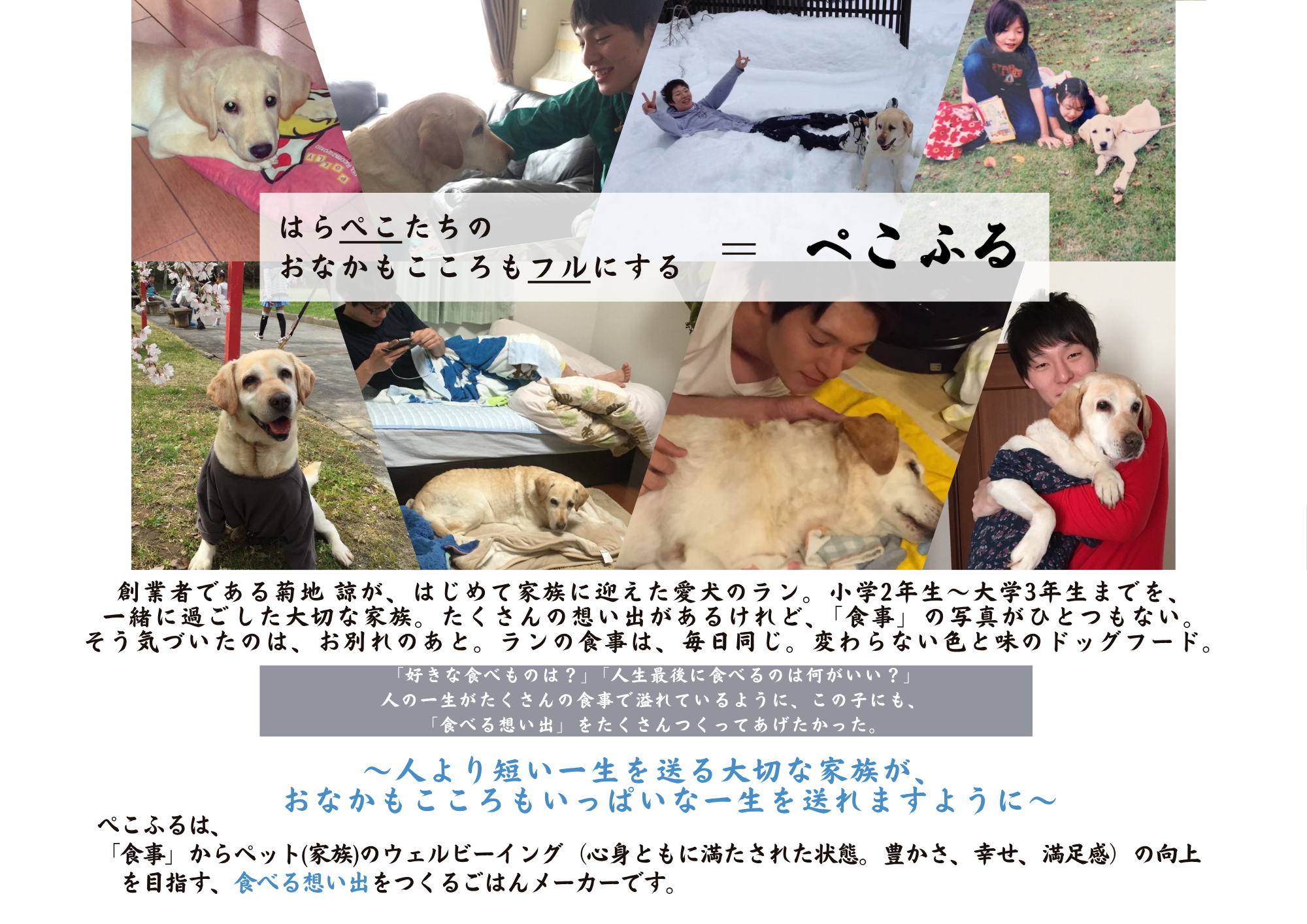 代表の菊地は、自身の小学二年生から大学三年生までを一緒に過ごした愛犬ランとのお別れの際に、"人の一生がたくさんの食事で溢れているように、この子にも食べる想い出をたくさんつくってあげたかった"と、いつも同じ色同じ味のするペットフードだけを食べさせていたことを強く後悔し、ペットフードの品質基準や規制の曖昧さといった課題の解決と、自分と同じような後悔をする家族をなくすために、2023年6月に起業しました。