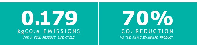 また、環境配慮の取り組みとして、製品の65%以上をリサイクルポリカーボネートで製造し、さらにパッケージには100%リサイクル可能なエコポリバッグを採用。製品のライフサイクル全体でのCO2e(CO2換算)排出量は0.179 kgと、従来の標準製品と比較して70%の削減を実現しています。