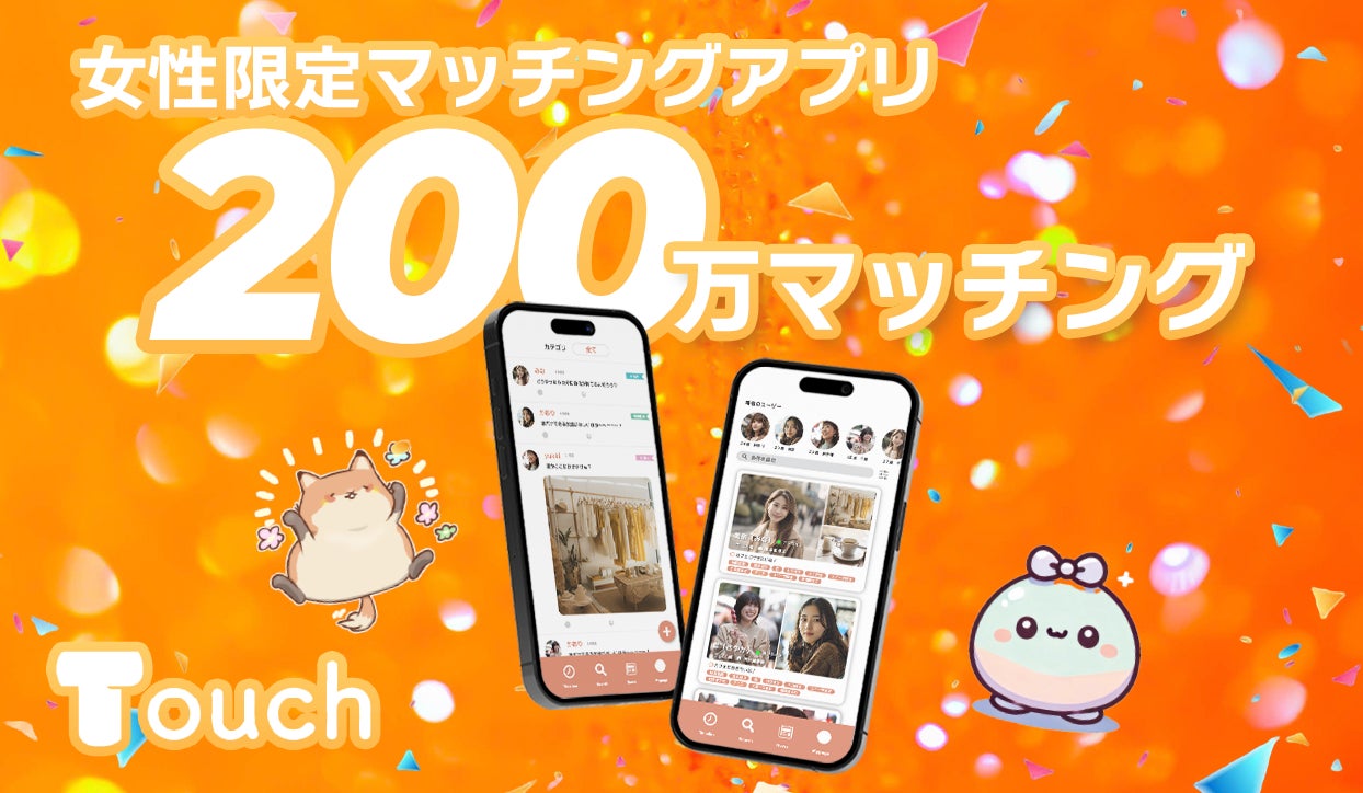 『Touch(タッチ)』は、「友達作り」を目的にしたソーシャルネットワークサービスを提供しております。これまで広告をかけずにオーガニックでユーザー数を伸ばし、この度、累計マッチング数200万回を達成いたしました。