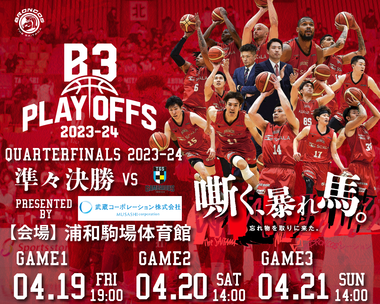 【さいたまブロンコス】B3 PLAYOFFS QUARTERFINALS 対戦相手が徳島ガンバロウズに決定!開催概要発表!