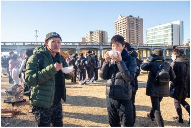今大会の会場となっている乙川は、岡崎市内を水源とし、岡崎市の水道の約6割を賄う市民の生活を支える川です。その乙川の恵みや上流の山に思いをはせ、参加のみなさんの健康を祈願するために、地元のお野菜と乙川上流の湧き水「延命水」を使った豚汁をご用意します。