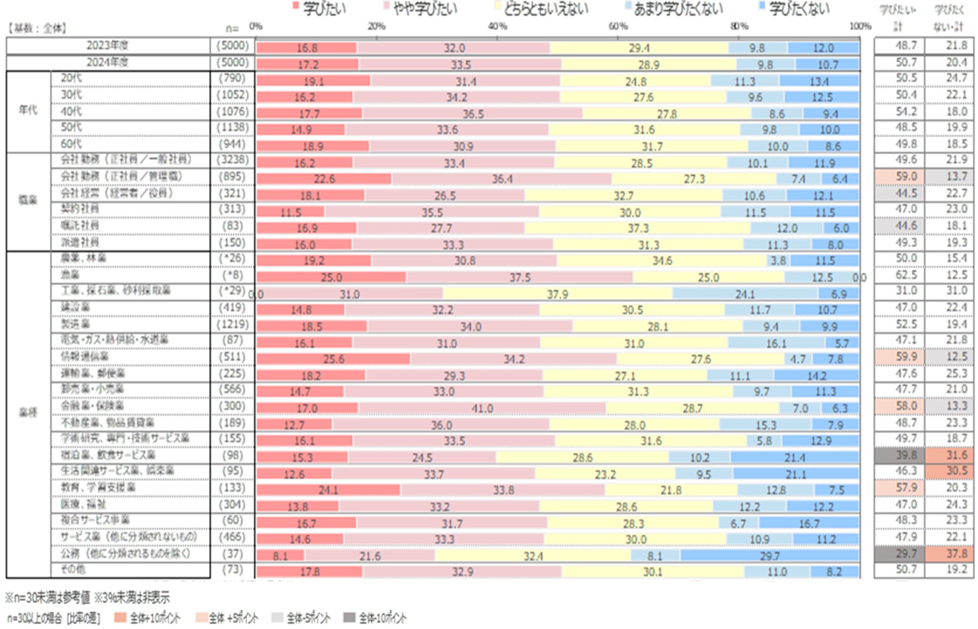 また、2024年度はさらに踏み込んで「学ぶ人」「学ばない人」の特徴を捉える調査を行いました。