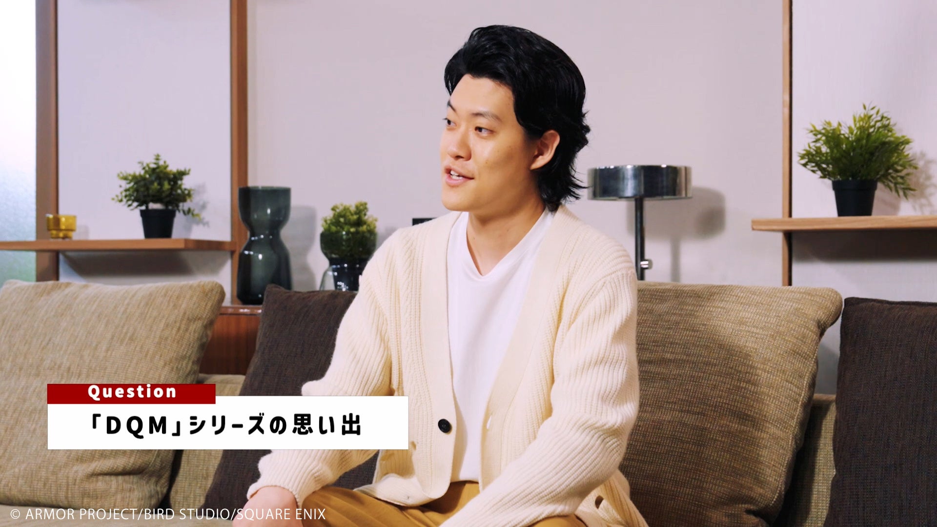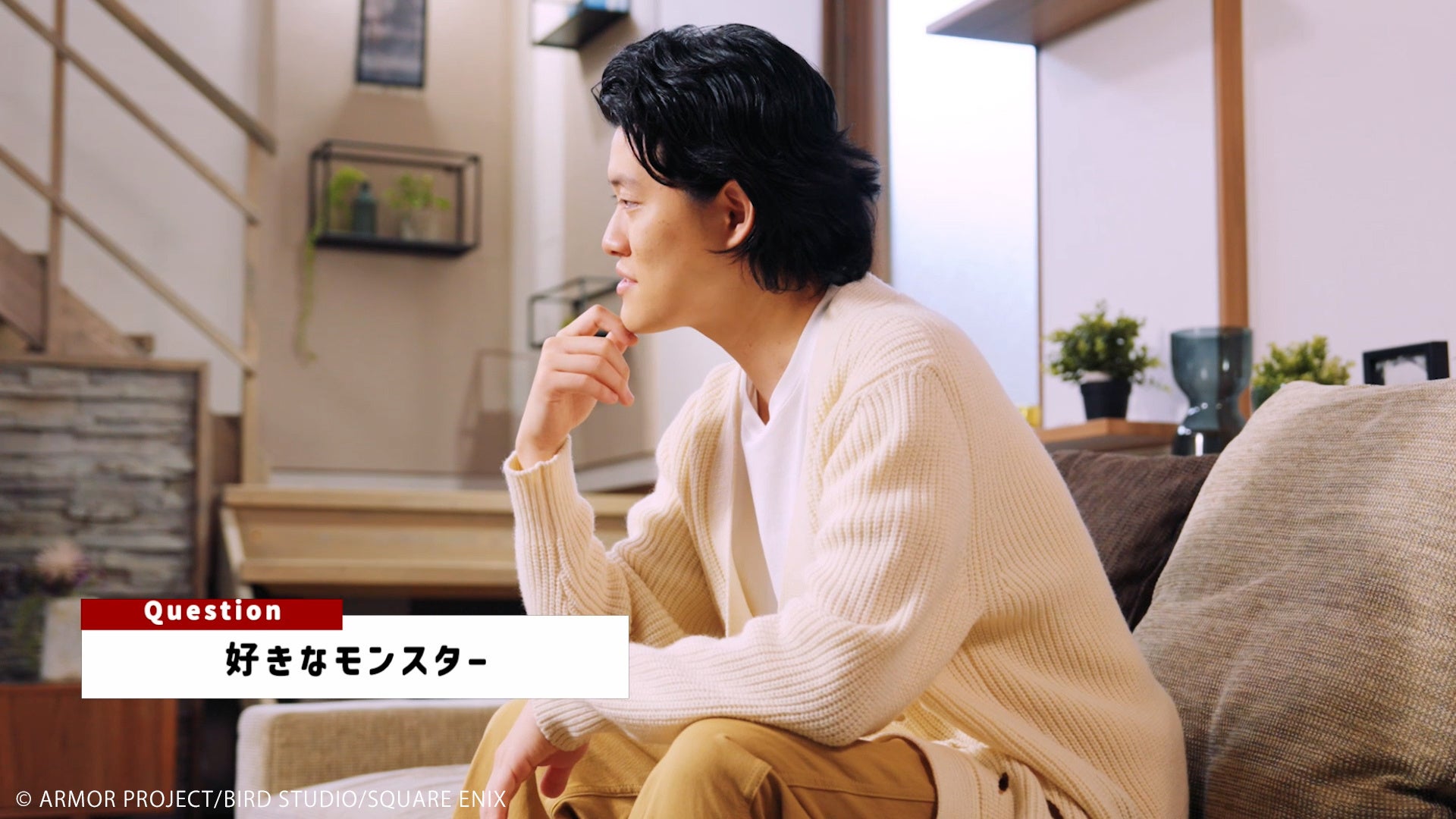 好きなモンスターを質問されると「うわー、そうですねー、難しいですけど」と頭を抱えて一拍置き、「“ゴールデンスライム”もやっぱベタに好きですね。モンスターじいさんと戦う時に“ゴールデンスライム”出てきてホンマに勝てへんくて」と好きでもあり苦くもある思い出を振り返りました。さらに記憶を呼び起こしてみると「今日CM撮影で“ももんじゃ”に踊り誘われて、“さそうおどり”くらったんですけど、マジで“ゴールデンスライム”の気持ちでした」と打ち明け、「当時、“ゴールデンスライム”に“さそうおどり”してたなーって思いながら、こんな気持ちやったんやって感じですね」と思わずモンスター側の気持ちを語りました。