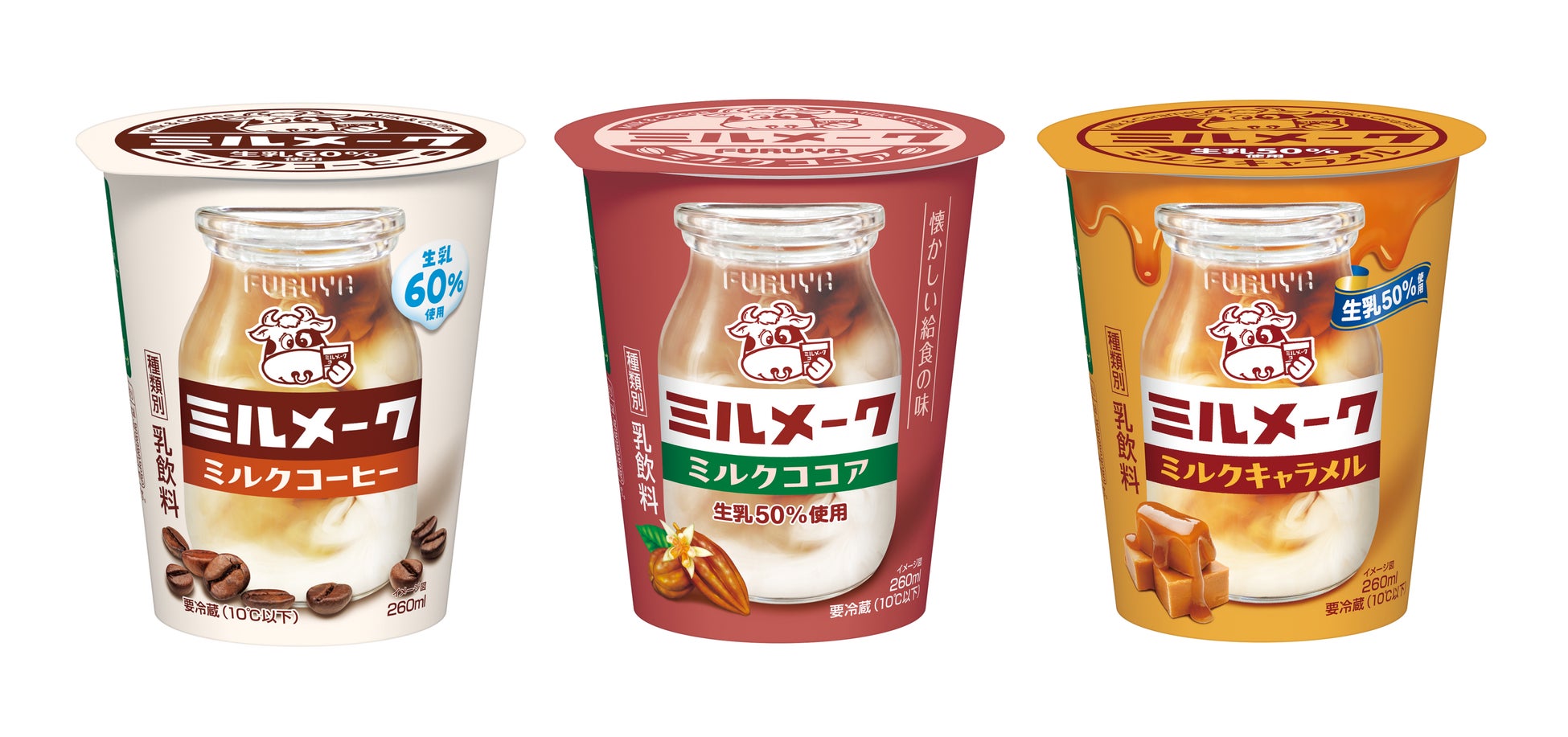 本シリーズは「ミルメーク」の味わいをそのままに、古谷乳業ならではの生乳を活かしたチルドカップ飲料として展開しており、第4弾となる今回は、人気のキャラメルフレーバーを商品化しました。