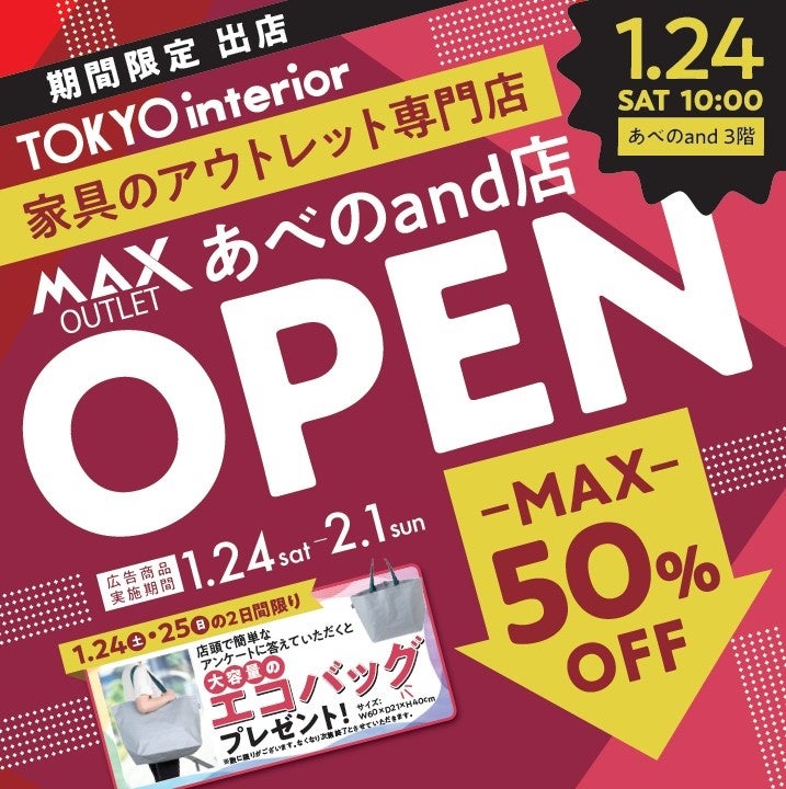 【大阪初出店】東京インテリア家具のアウトレット専門店「MAXあべのand店」期間限定1/24オープン