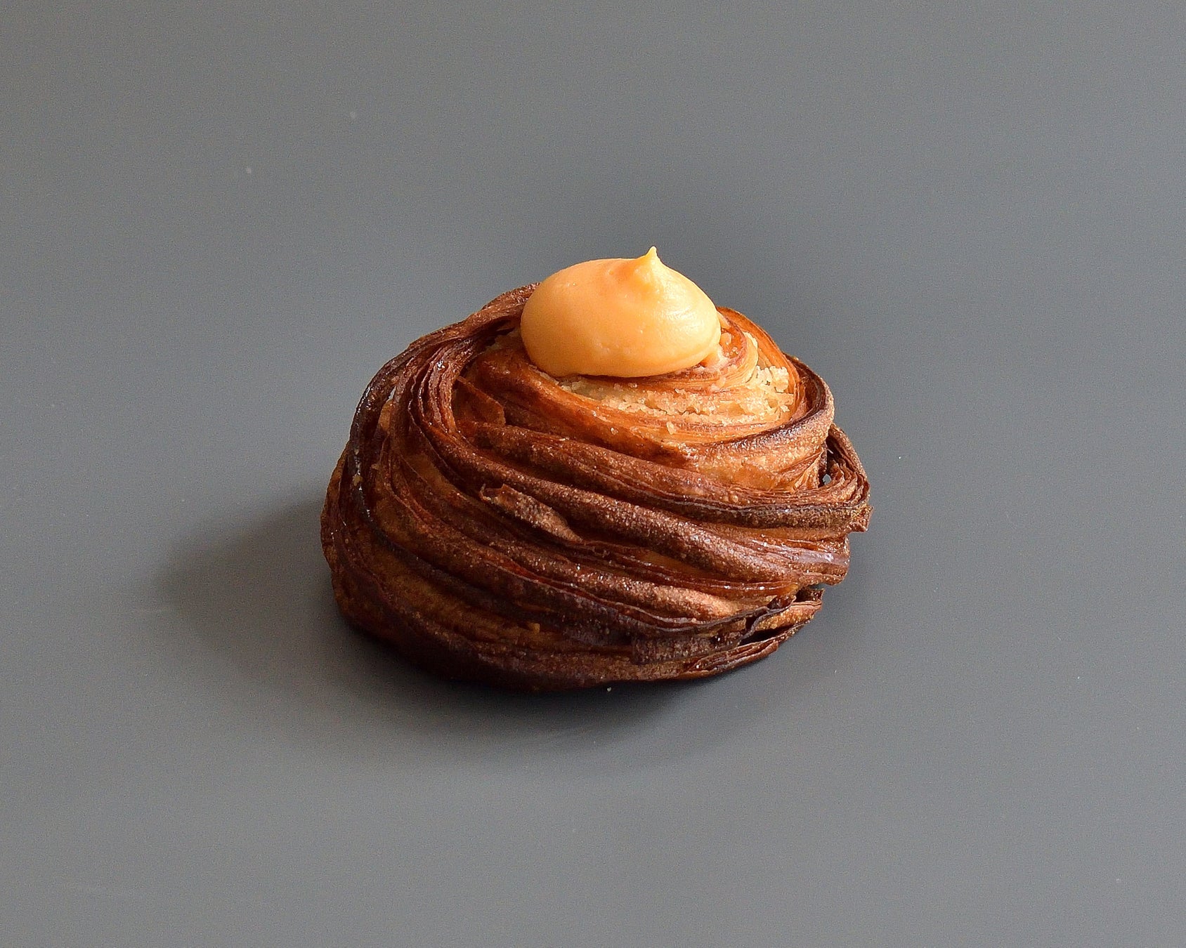 芳醇なバターが香る層のサクサク食感、内側のレア生地とクリームの風味と食感のコントラストがやみつきになる上品な一品。