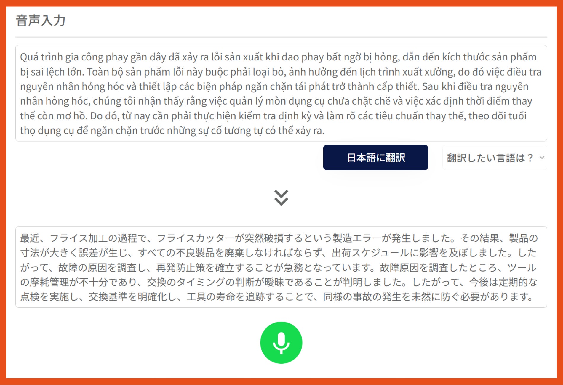海外からの技能実習生や外国人材を活用している製造現場では、言語の壁が原因となり、不具合報告や技術ノウハウの共有がスムーズに行えないケースが増えています。従来は、監督者が手作業で文章を翻訳したり、専門用語を誤訳してしまうなどの課題があり、品質管理の効率化や現場でのコミュニケーションの円滑化が十分に進んでいませんでした。