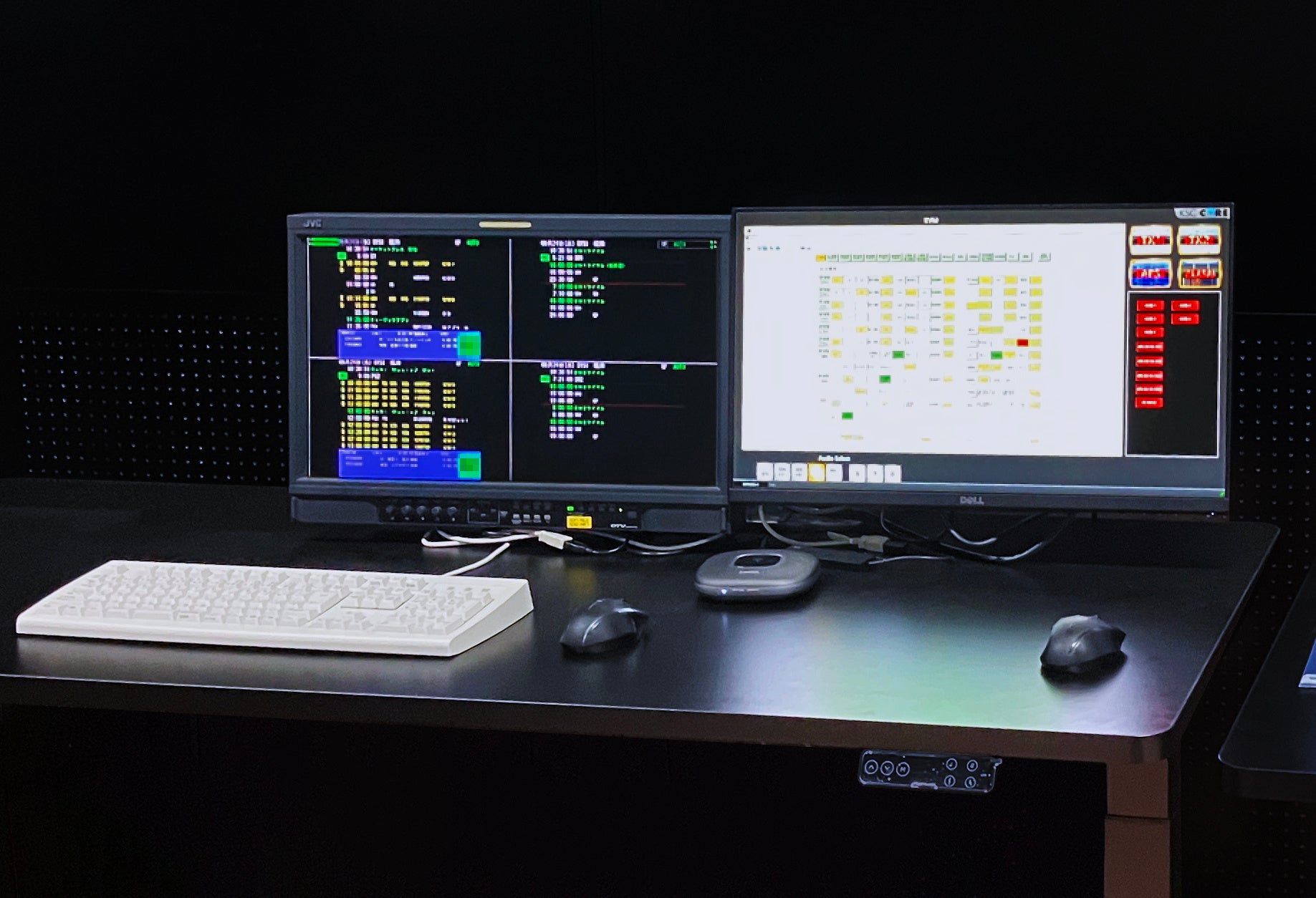 放送局のマスター(主調整室)業務をはじめ、ビル・工場・インフラ設備などの監視業務をリモート運用できるシステムです。パソコン画面に各種監視ルームを忠実に再現し、実際の監視室にいるのと同様にリモートで監視・制御ができます。既存設備を改修せずに低コストかつ迅速に導入でき、監視制御サーバーを設置することで複数拠点を同時に統合監視できます。