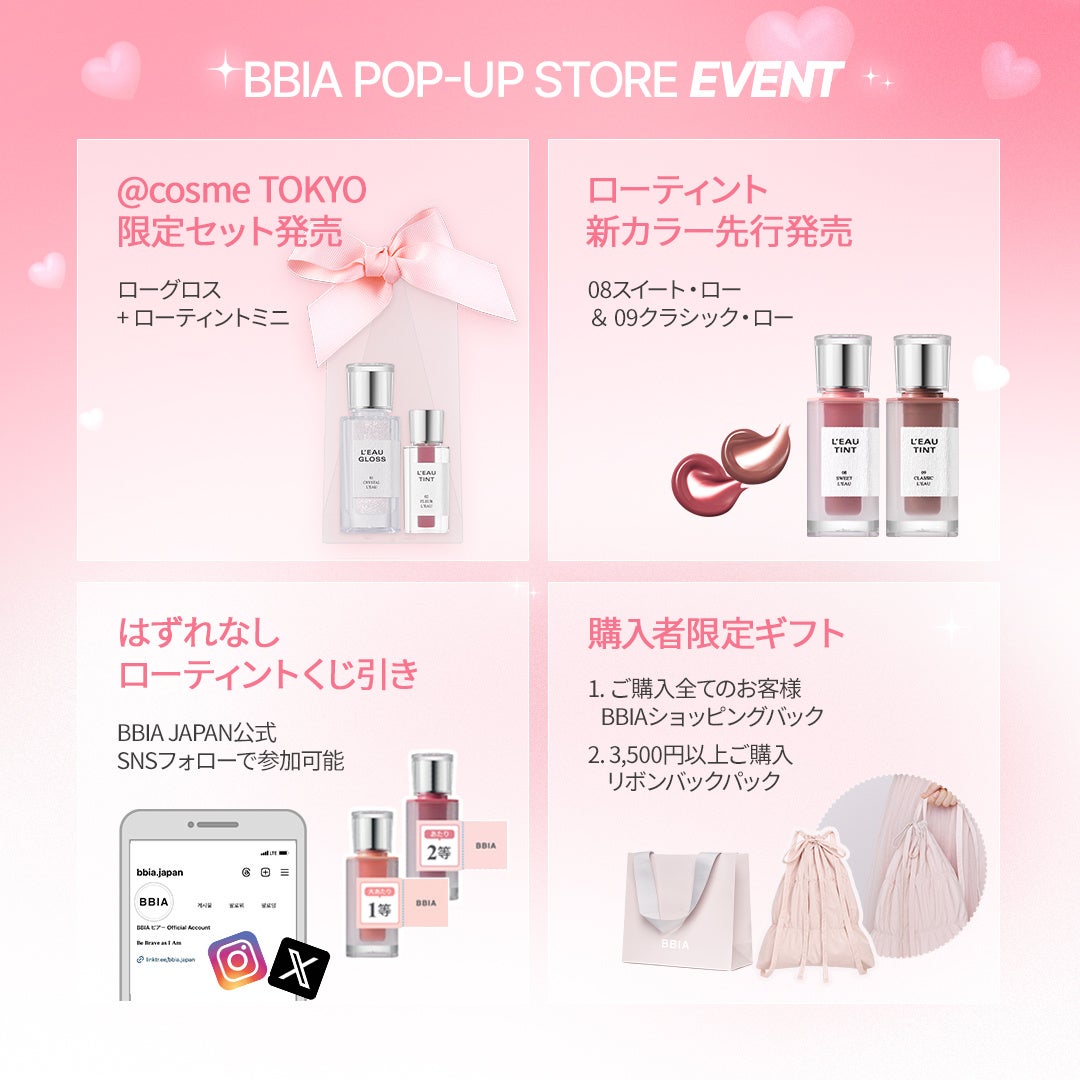 日本初となる単独ポップアップストアはメイン商品であるローティント+BBIA JAPAN設立1周年記念をコンセプトに、BBIA(ピアー)ならではの世界観をお楽しみいただけます。