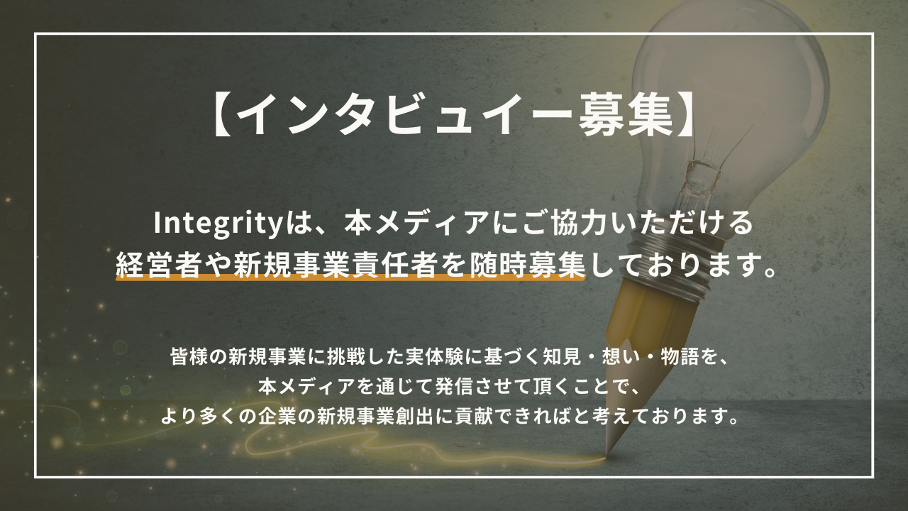 そのような背景のもと、Integrityは主力事業として新規事業創出の支援を行っておりますが、新規事業創出に関する知見をより多くの企業に広めていくために、新規事業特化型のメディアを立ち上げることに至りました。