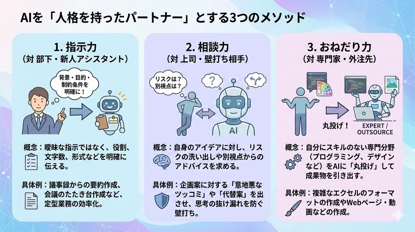 プロンプトを覚えるのではなく、「人間(部下)への依頼と同じ配慮」が必要であることを学習しました。