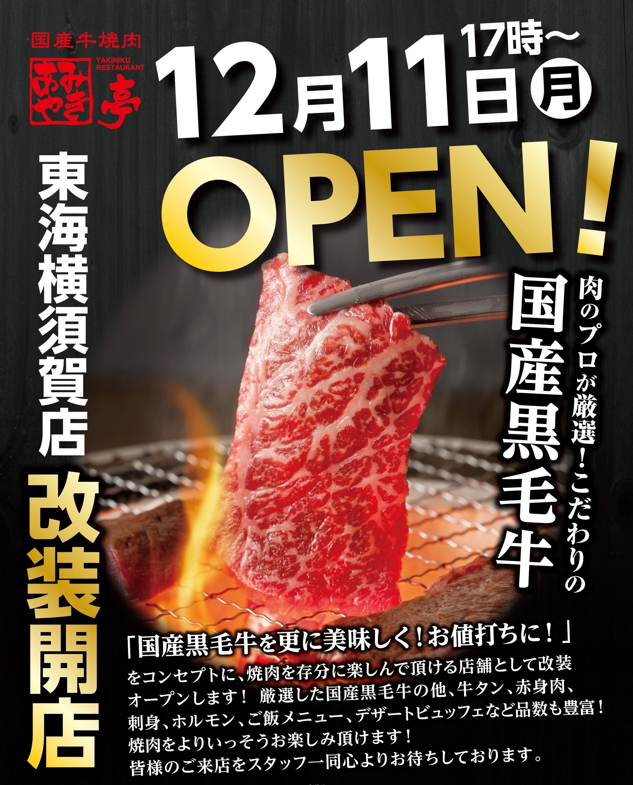【あみやき亭(中部)】12月11日(月)東海横須賀店改装開店!