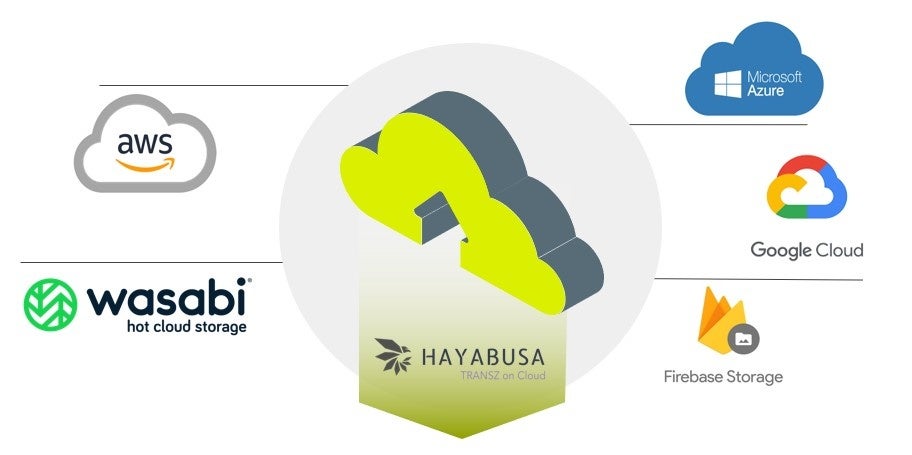 この度、「HAYABUSA TRANSZ on Cloud」とWasabiが提供するクラウドストレージ「Wasabi Hot Cloud Storage」との接続が実現し、データの送受信が可能となりました。