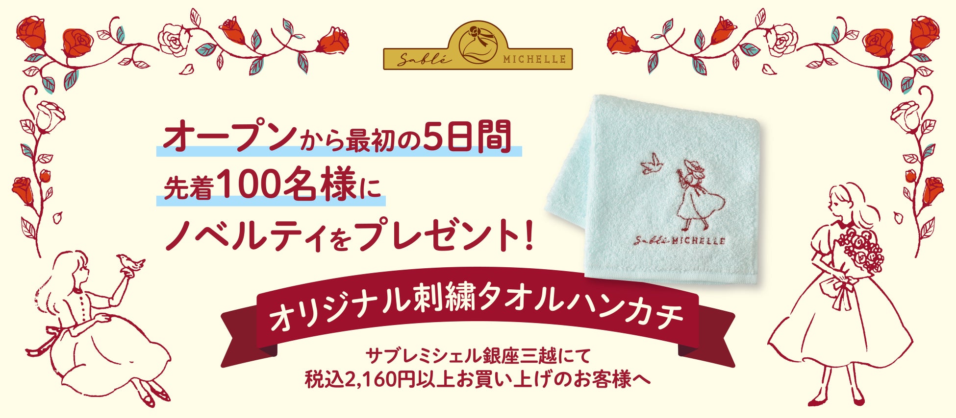 各日先着100名様にオリジナルのタオルハンカチを1枚プレゼントいたします。