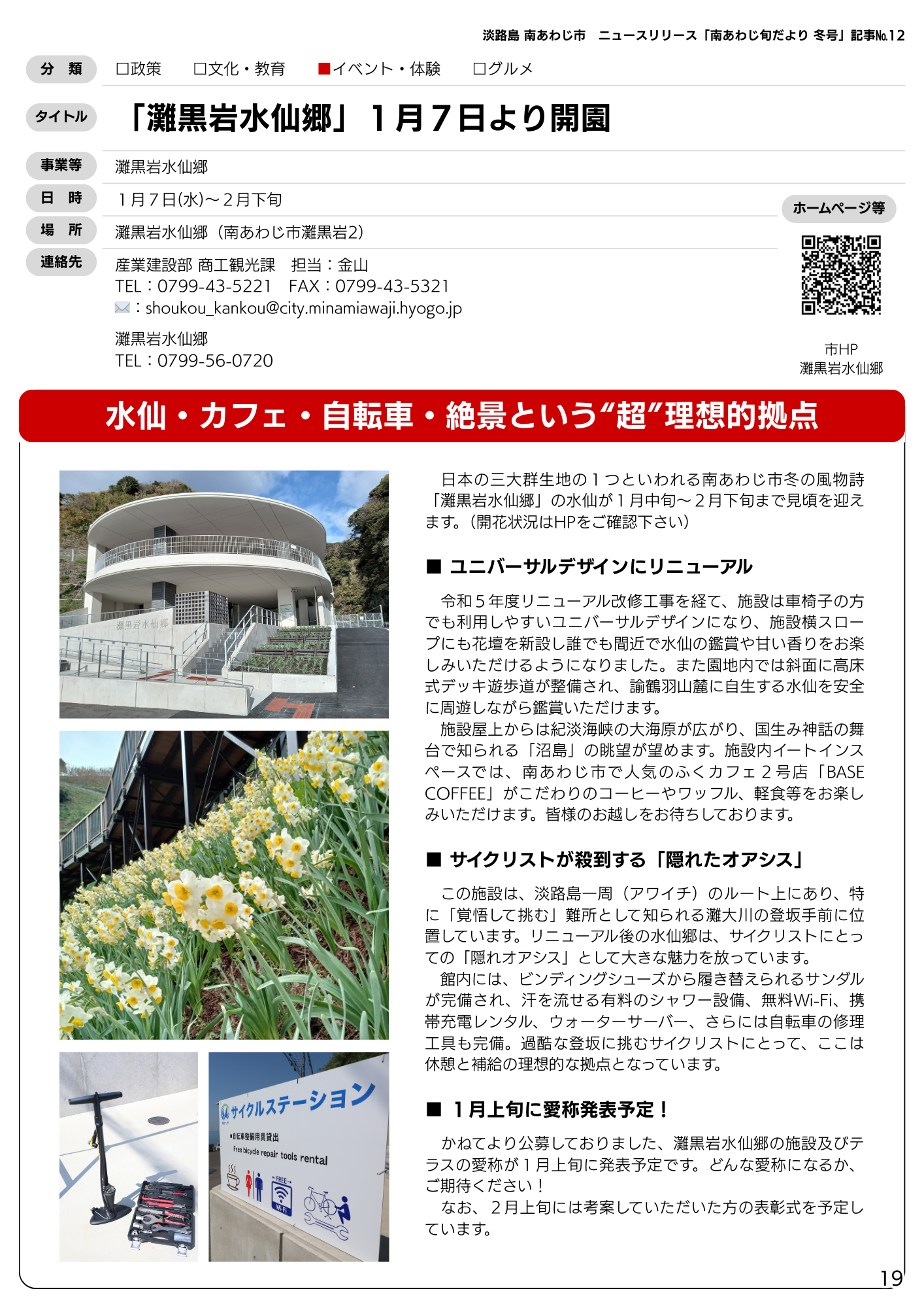 12.「灘黒岩水仙郷」1月7日より開園(P.19)