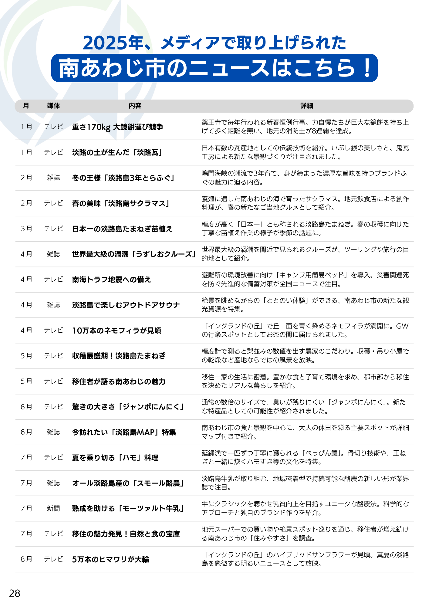 「2025年、メディアで取り上げられた南あわじ市のニュース」を多数ご紹介!(P.28・29)
