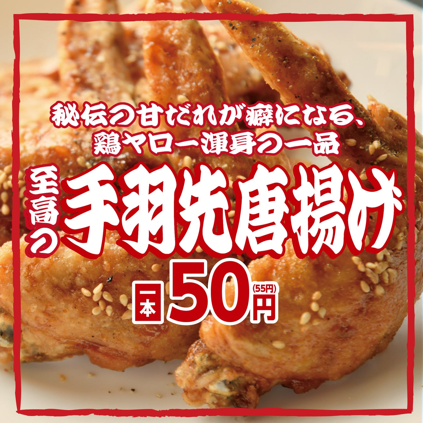 50円のレモンサワーに追加してなんと手羽先も50円でご提供!今回は内装にもしっかりこだわり、おしゃれな空間でのお食事をお楽しみいただけます!!話題のオープニング記念セールも必見!