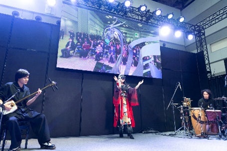 さらに、公式アンバサダーであるせきぐちあいみさんによるオープニングパフォーマンスが実施されました。最先端の空間コンピューティングでのライブペイントと三味線・パーカッションの生演奏によるステージを披露され、会場は大いに盛り上がりました。
