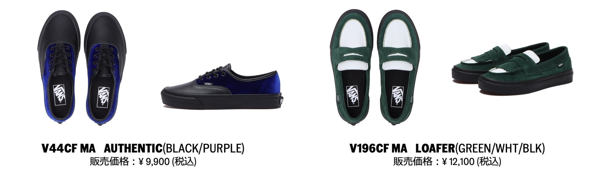 VANSのファーストモデルでもあるAUTHENTIC(オーセンティック)には、ブルーのベロアにブラックのシボレザーを、新たな定番となりつつある、バルカナイズドワッフルソールを採用したLOAFER(ローファー)には、