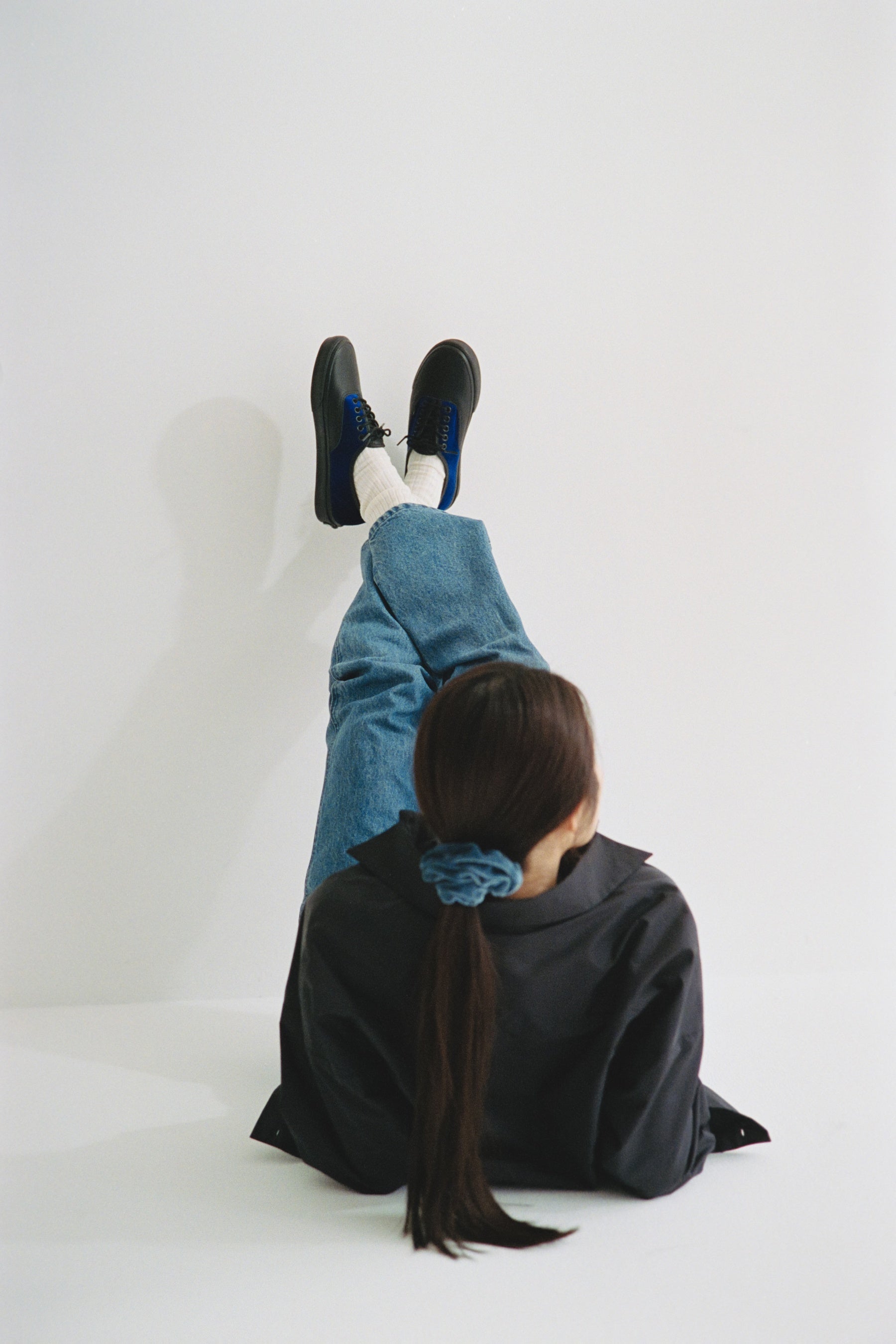 オーセンティックはカジュアルの中にも品のあるスニーカーを目指して作ってみました。レザーとベロアの異素材のミックスは品がありつつ足元に愛着が湧くな、と思いました。 ベロアのブルーは光の当たり具合で大きくカラーが変化します。時間やシーンで見え方が大きく変わるのも面白いな、と思います。