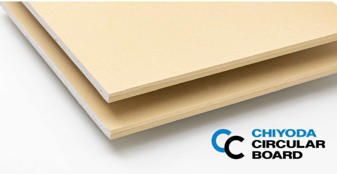 100%使用し、製造時の実質カーボンニュートラルを実現した “チヨダサーキュラーせっこうボード”