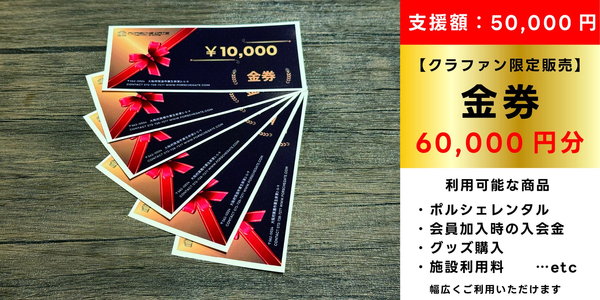 50,000円ご支援いただいたお客様に金券60,000円ご提供(10,000円お得)