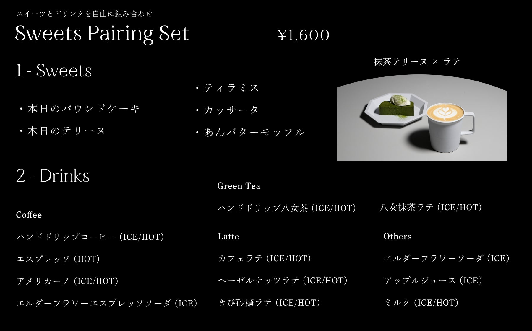 Sweets Pairing Set(スイーツペアリングセット): 1,600円(税込)