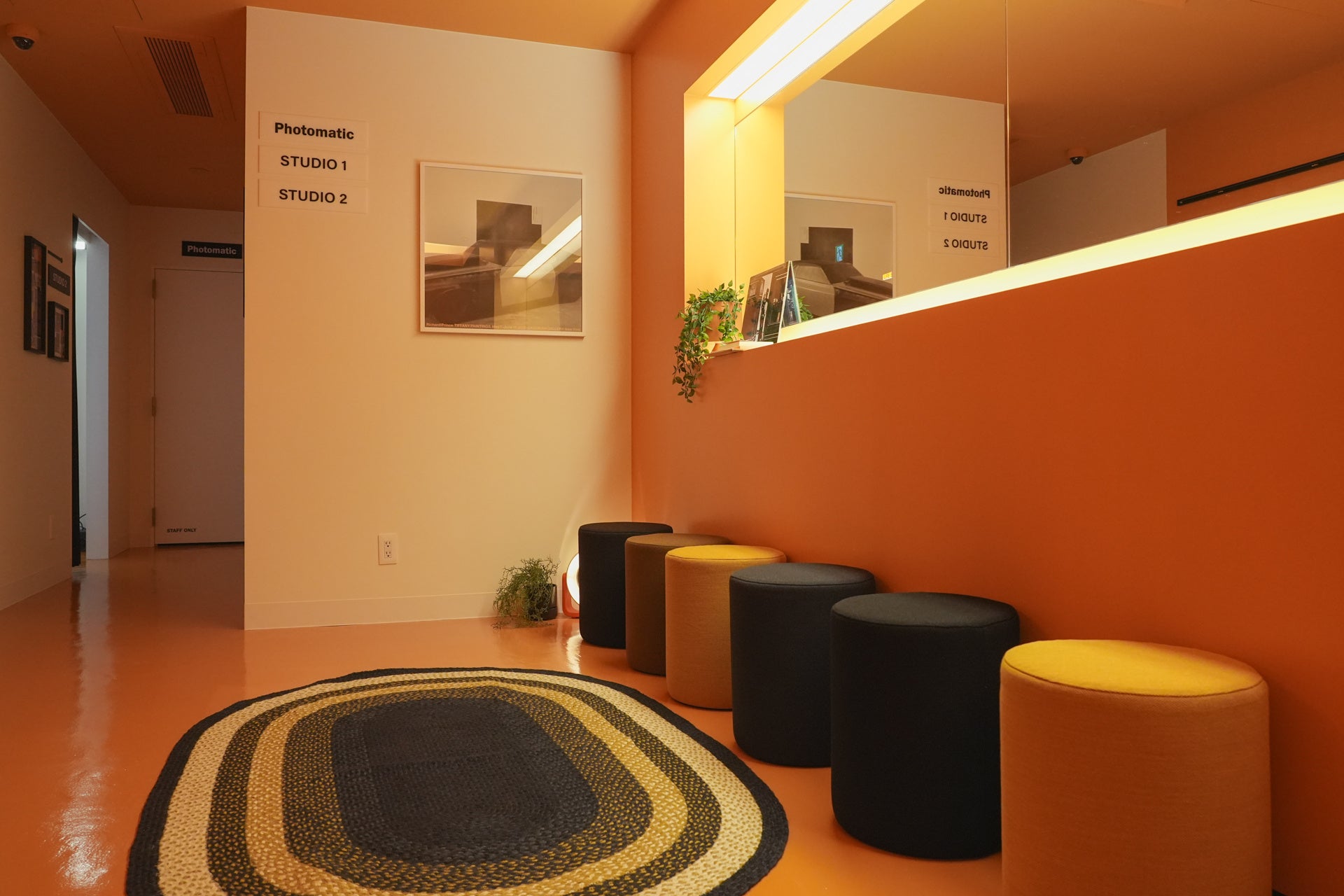 フラッグシップショップの店舗デザインは、韓国のPhotomatic店舗デザインを手掛けるデザイナーのイム・スミ氏が担当し、オレンジ✕ブラックを基調とした、大切な写真のように、長い歳月を経て完成するインテリアで構成された内装でお客様をお迎えします。Photomaticでのセルフフォト撮影はもちろん、店内の雰囲気を背景にお持ちのスマートフォン等での撮影もお楽しみください。