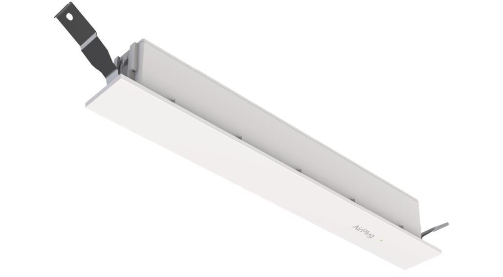 特長 :AirPlug™ PowerTx-C は、システム天井や一般天井に細いスリッドをあけ、天井に埋め込んで設置するタイプの送電機です。このモデルは、天井埋め込みの設置を実施することで、空間内に最適な間隔で、高効率のワイヤレス給電空間を実現します。