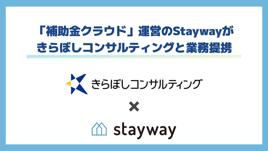 「金融にも強い総合サービス業」を目指すきらぼしグループの株式会社きらぼしコンサルティング(本社:東京都港区、代表取締役社長 中野良明)では、補助金支援のDX(デジタルトランスフォーメーション)を通じた経営支援サービス「補助金クラウド」「前ほじょくん(補助金債権の早期資金化)」を運営する株式会社Stayway(大阪府大阪市、代表取締役 佐藤 淳、以下「Stayway」といいます)と、補助金活用による経営支援を目的としたビジネスマッチング契約を締結したことを、お知らせいたします。