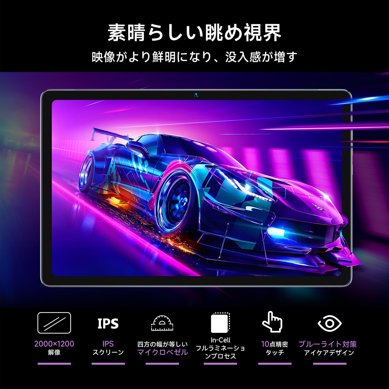 MaxPad I11Plus タブレットは2000*1200IPS の10.4インチのディスプレイを採用し、従来より、画像はもっと鮮やかで表示します。2K 10.4インチタブレットはincellスクリーン処理技術を採用しており、良い画質を実現できます。10.4インチタブレットはWidevineL1をサポートしており、YouTube ビデオ、Disney+などが高画質で視聴可能であることを示しています。