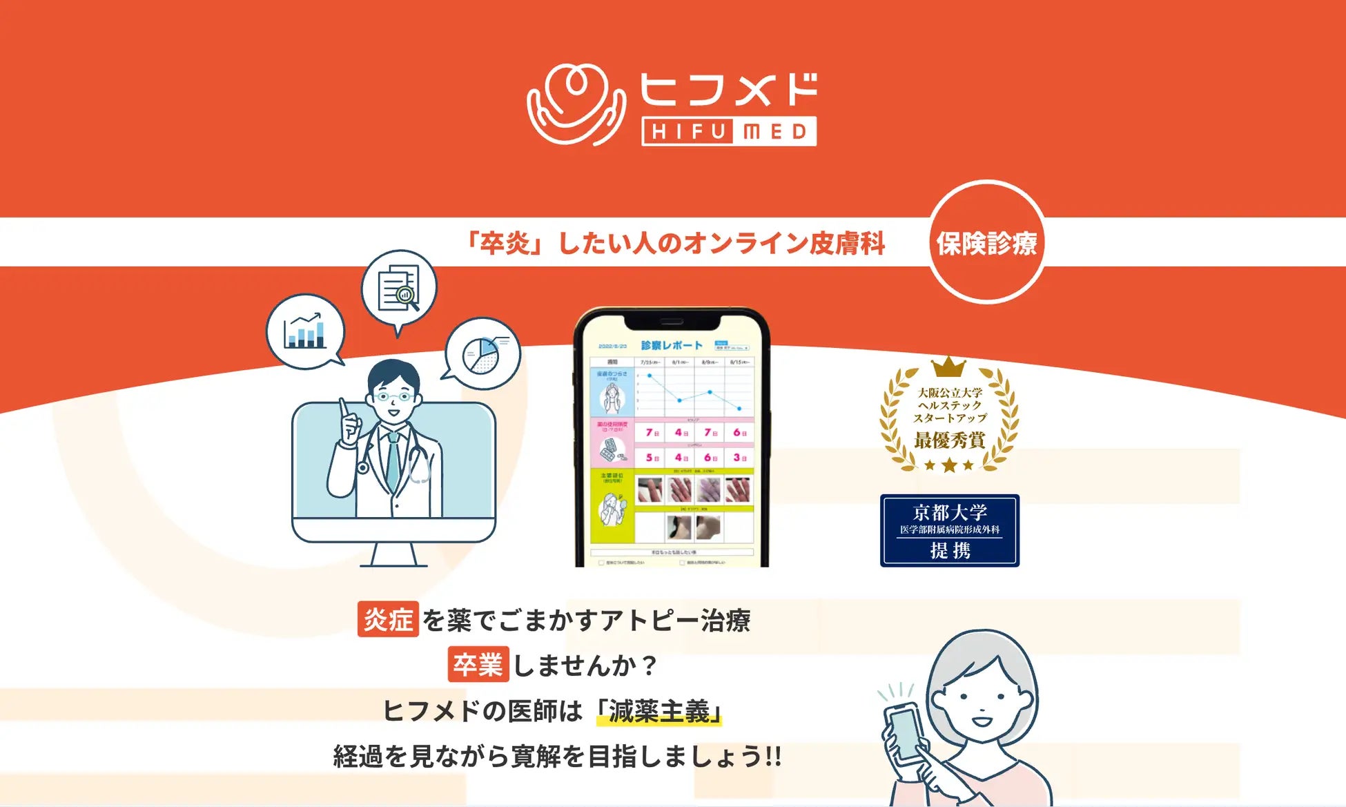 当社は、「医療の見える化をし、個別化医療を実現する」をミッションに掲げ、2023年3月より卒炎患者様を増やすアトピー性皮膚炎専門の患者向けアプリ、ヒフメドを提供しております。ヒフメドは、患者様自身が症状を記録し、データを分析することで、医師と共に最適な治療法を見つけ出す新しいアプローチを提供しています。