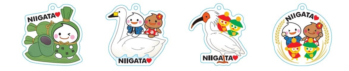 地元企業「三幸製菓」のキャラクターと新潟名物がコラボしたオリジナル限定グッズ(4種類)をご用意しました。新潟の名産品の笹団子と米、また、新潟県の鳥であるトキ、新潟に飛来する白鳥と三幸製菓キャラクターズの限定コラボグッズとなっています。