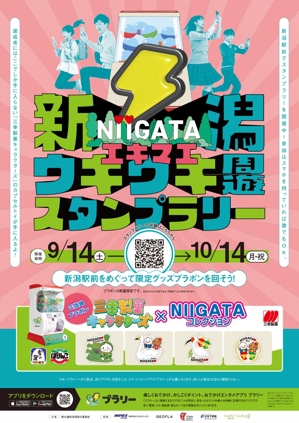 〜 「新潟駅前ウキウキ周遊スタンプラリー」実施期間:9月14日(土)〜10月14日(月)スタンプを集めて地元企業「三幸製菓」のキャラクターと新潟名物がコラボしたオリジナルグッズを手に入れよう〜
