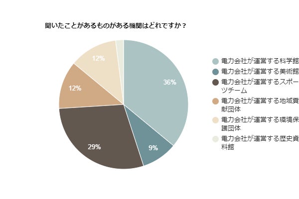 電力会社が運営する科学館の認知度は36%と最も高い結果に