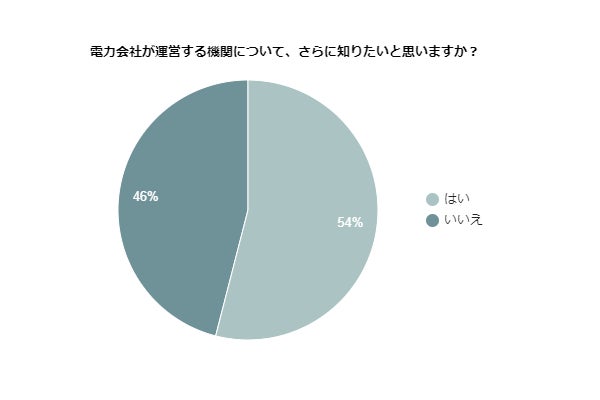 電力会社が運営する機関についてさらに情報を知りたいかという質問に対し、54%の方が「はい」と回答しました。