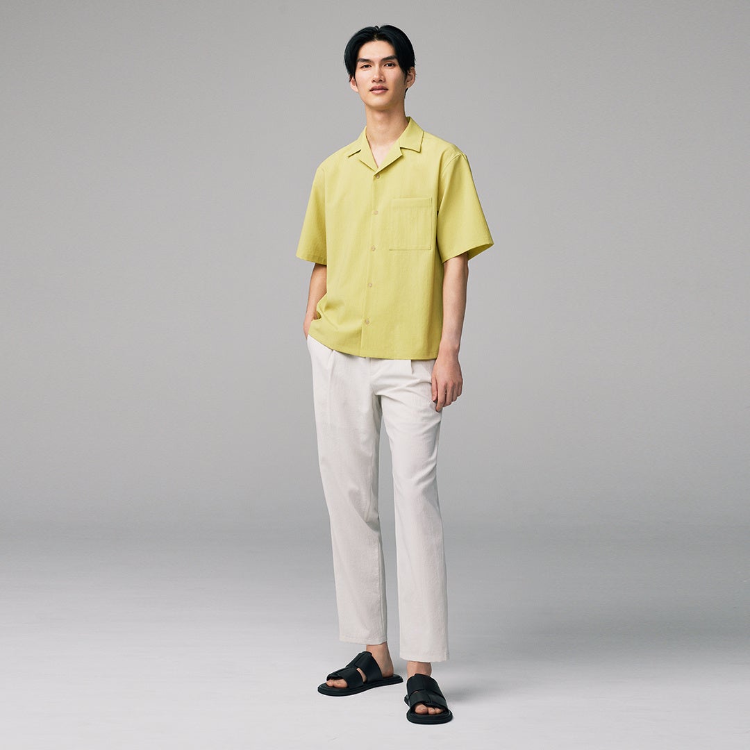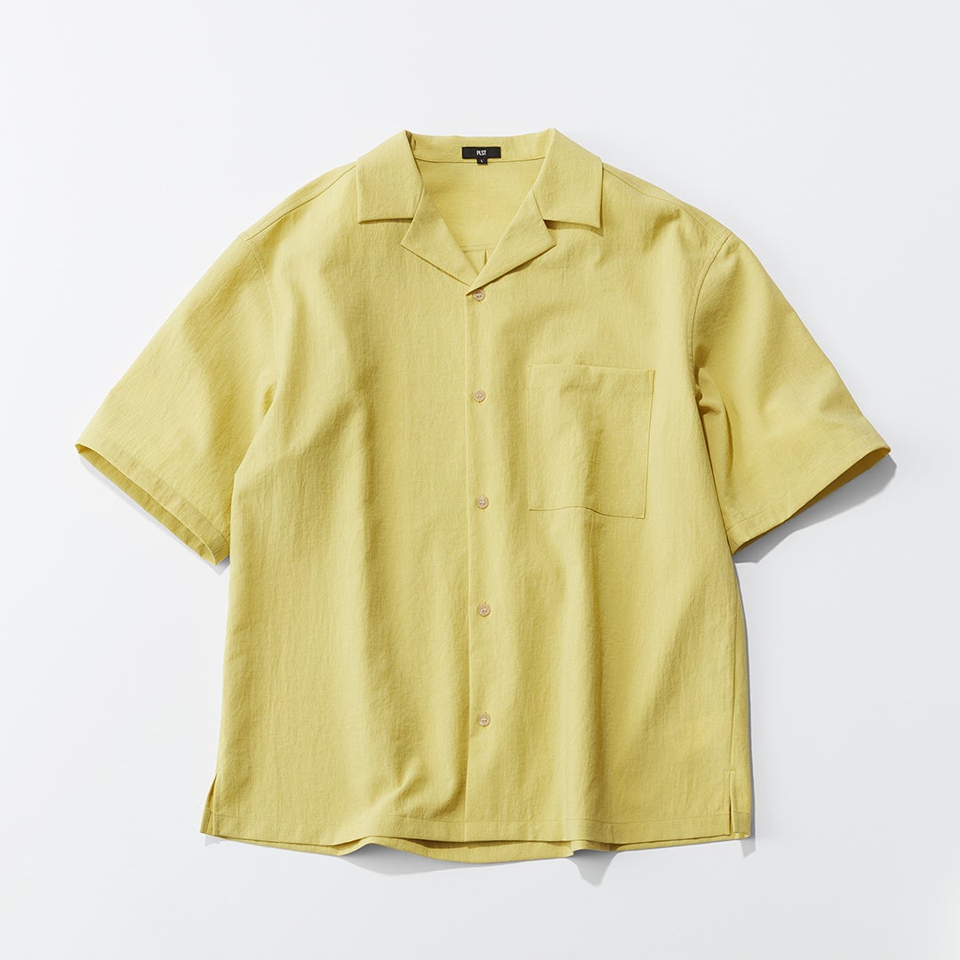 返りをはっきりと付けたおさまりの良い襟型が特徴のオープンカラーシャツは7色展開。