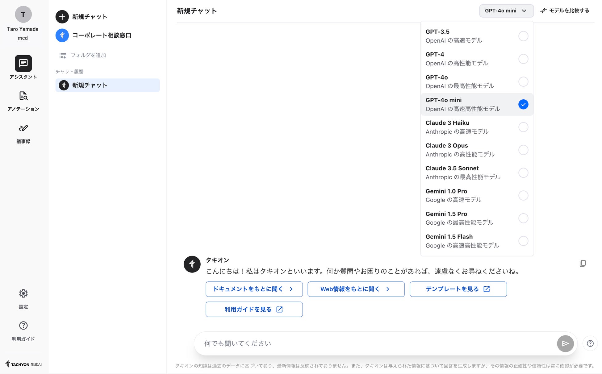 最新の高速・高性能LLM「GPT-4o mini」を「Tachyon 生成AI」に搭載