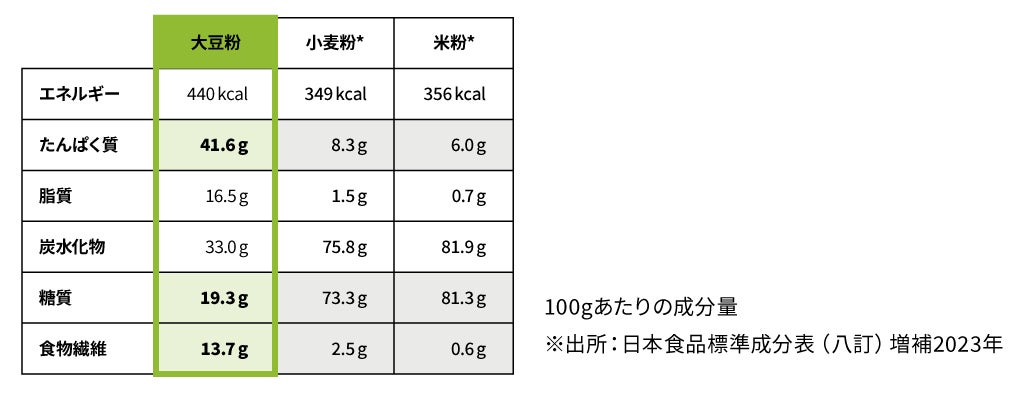 大豆粉は、小麦粉よりも高たんぱくで低糖質