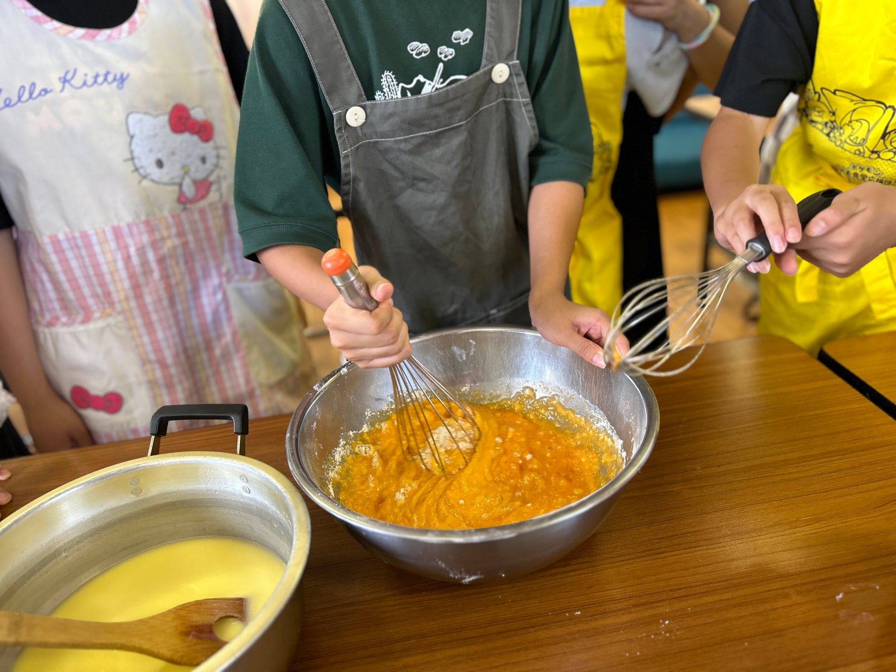パティシエの方が子ども食堂に来てくれて、マシュマロやジャムを入れたカヌレを作りました。