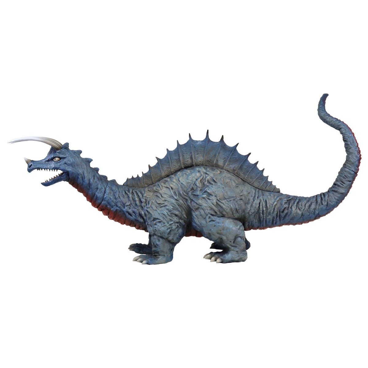 全体のフォルムから見ても、この怪獣の特徴が非常に捉えられたプロポーションとなっており、頭部から突き出た2本角、場外首と尻尾、かつての特撮でしばしば見られる竜脚類型の形状。