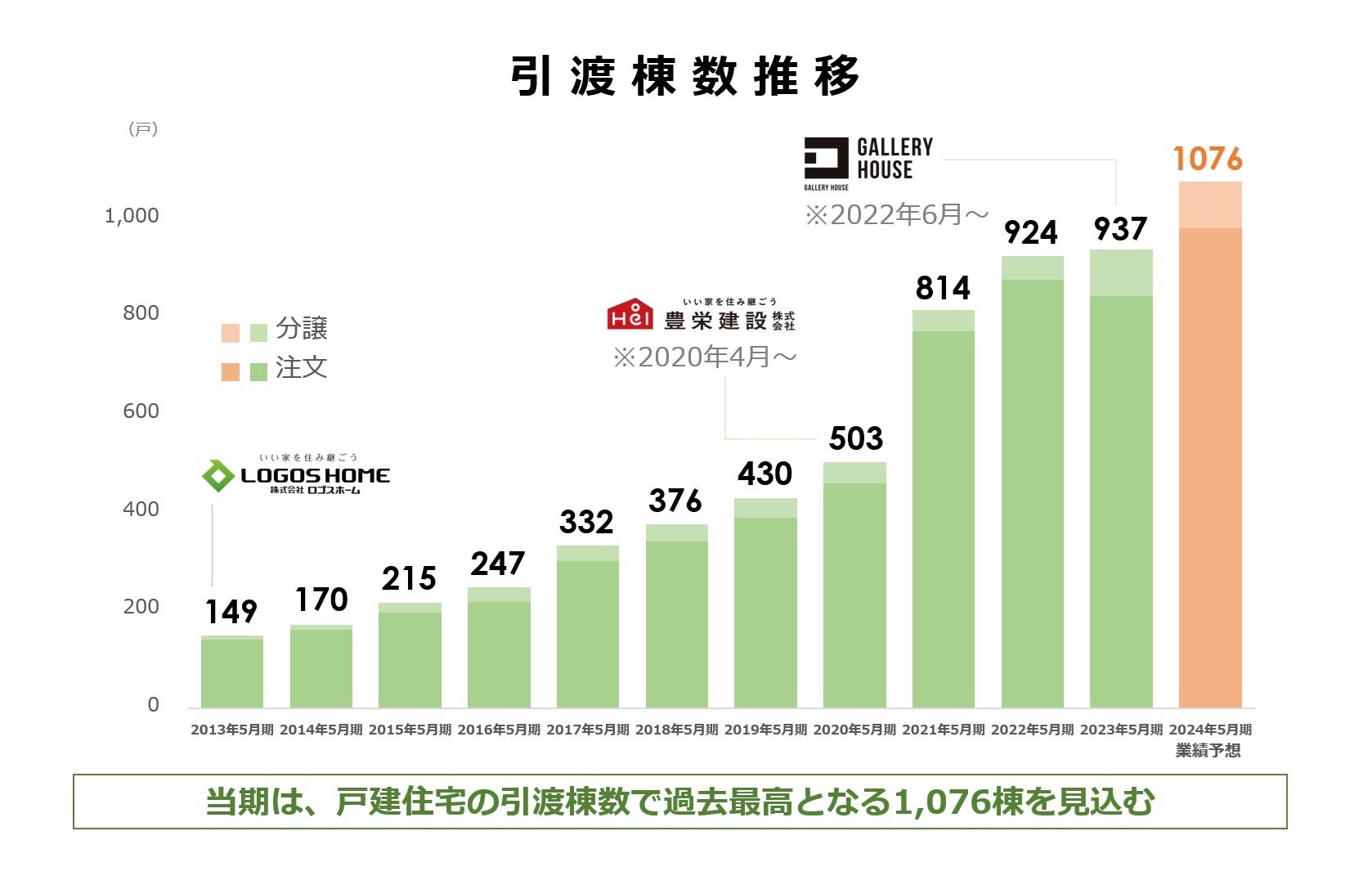 「日本の家づくりをつくる。」を経営理念とし、全国の工務店と連携し「地域№1工務店の集合体」を目指しています。主な事業である住宅事業においては、北海道を中心に、青森県・岩手県・宮城県・福島県・栃木県に・埼玉県に全29拠点を構え、事業会社であるロゴスホーム、豊栄建設、GALLERY HOUSEが各地で特色ある住宅を建築しています。